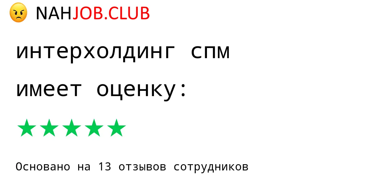 🔴 В списке 13 отзывов бывших работников про ИНТЕРХОЛДИНГ СПМ с рейтингом 5 из 5 . Это искренние мнения про атмосферу, доходы, штрафы, отпуска.