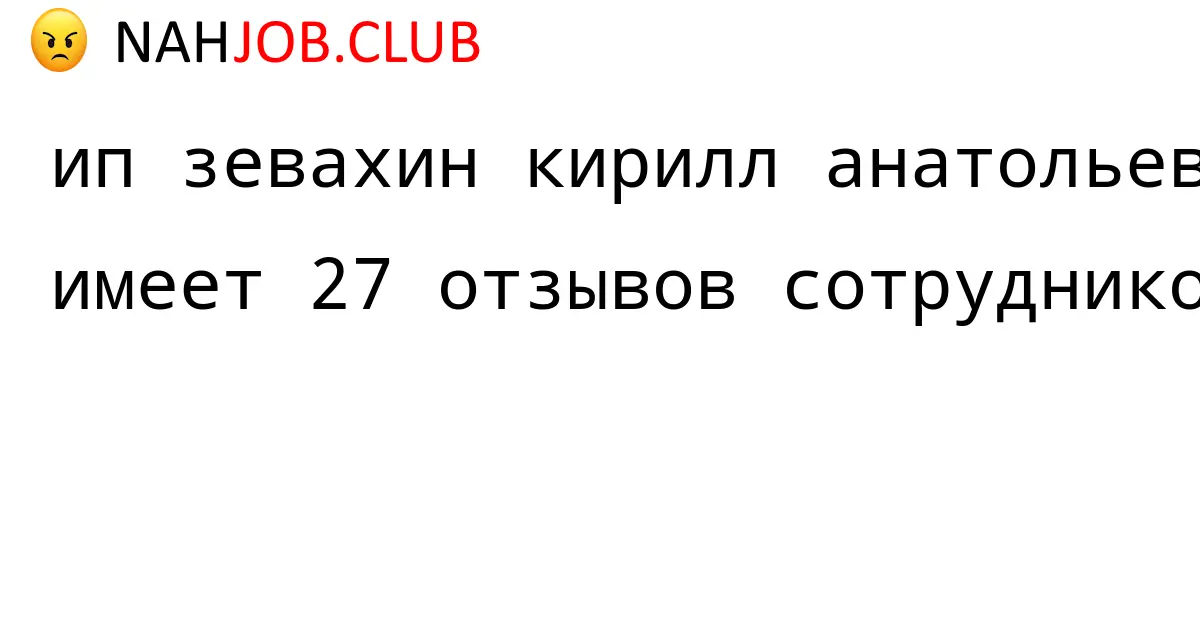 🔴 Мы собрали 1 отзыв бывших сотрудников про ЗЕВАХИН КИРИЛЛ АНАТОЛЬЕВИЧ по городу Вологда . Это данные изнутри про зарплату, коллектив, штрафы.