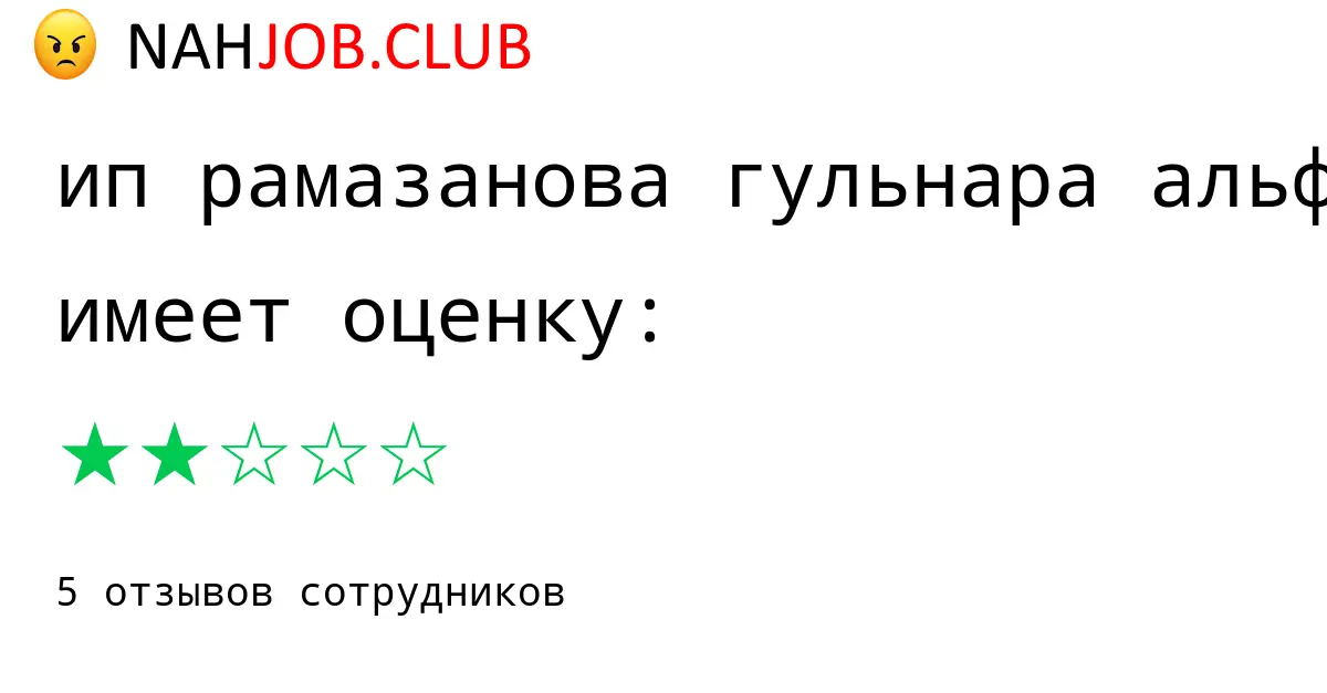🔴 Изучаете вакансию оператор компании РАМАЗАНОВА ГУЛЬНАРА АЛЬФРИТОВНА? Почитайте 1 отзыв бывших сотрудников про работу по должности Оператор в РАМАЗАНОВА ГУЛЬНАРА АЛЬФРИТОВНА