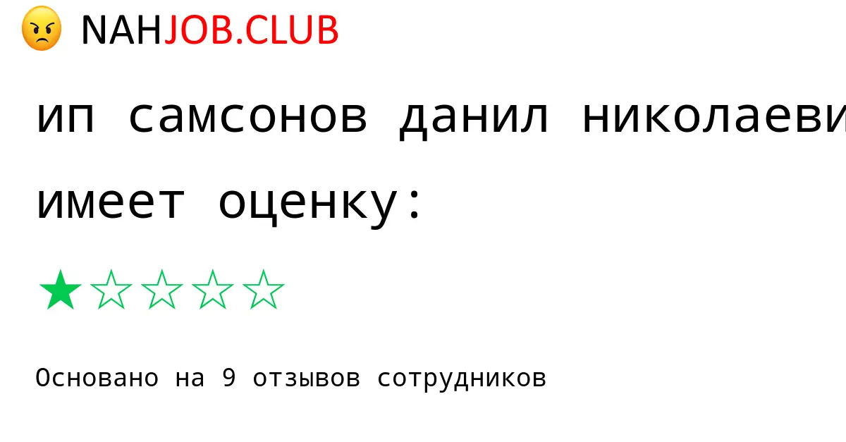 🔴 Изучаете вакансию техник компании САМСОНОВ ДАНИЛ НИКОЛАЕВИЧ? Почитайте 1 отзыв бывших сотрудников про работу по должности Техник в САМСОНОВ ДАНИЛ НИКОЛАЕВИЧ