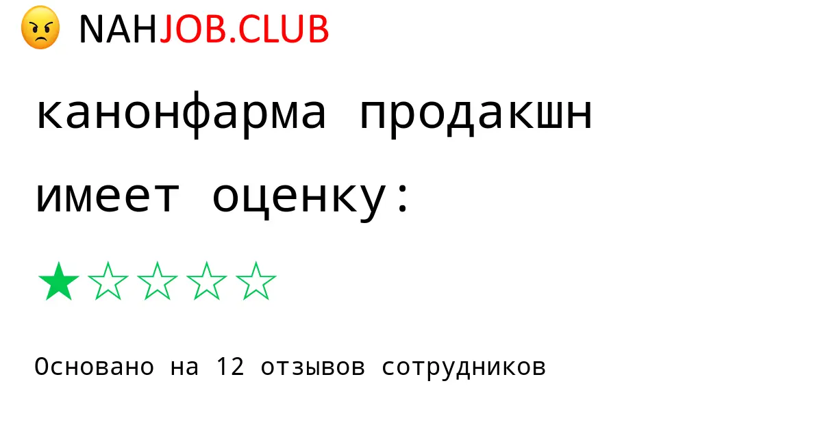 🔴 В списке 12 отзывов бывших работников про КАНОНФАРМА ПРОДАКШН с рейтингом 1 из 5 . Это искренние мнения про атмосферу, доходы, штрафы, отпуска.