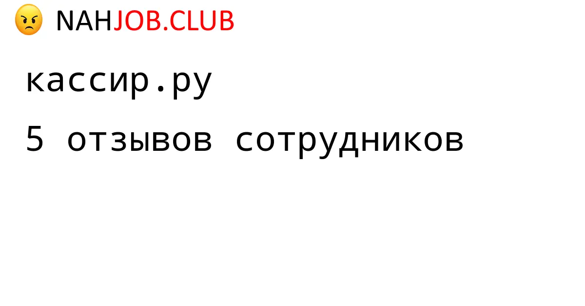 🔴 Мы собрали 1 отзыв бывших сотрудников про КАССИР.РУ по городу Мытищи . Это данные изнутри про зарплату, коллектив, штрафы.
