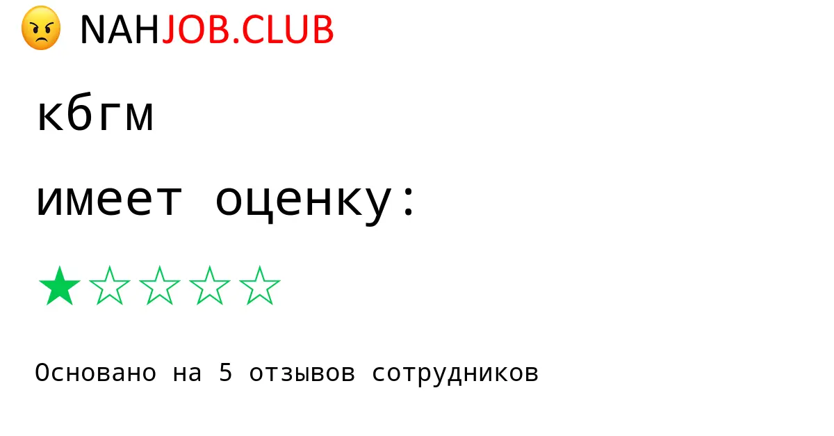 🔴 В базе Nahjob 5 отзывов и мнений бывших и действующих работников про КБГМ с рейтингом 1 из 5 . Это реальные отклики про зп, атмосферу, штрафы.
