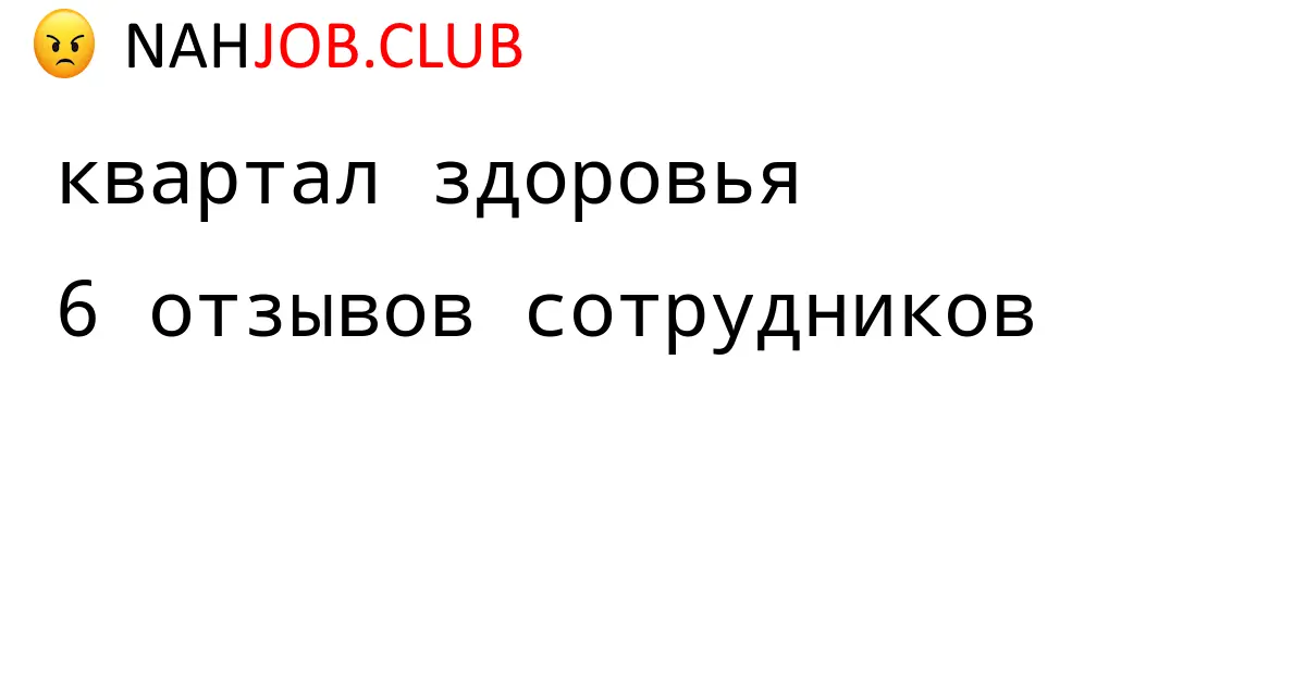 🔴 Мы собрали 6 отзывов бывших сотрудников про КВАРТАЛ ЗДОРОВЬЯ по городу Москва . Это данные изнутри про зарплату, коллектив, штрафы.