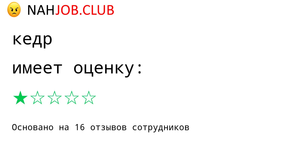 🔴 В базе Nahjob 1 отзыв и мнений бывших и действующих работников про КЕДР по городу Кемерово . Это реальные отклики про зп, атмосферу, штрафы.