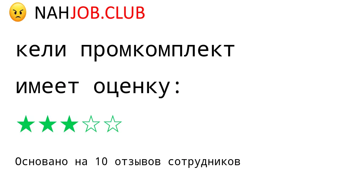 🔴 В списке 10 отзывов бывших работников про КЕЛИ ПРОМКОМПЛЕКТ с рейтингом 3 из 5 . Это искренние мнения про атмосферу, доходы, штрафы, отпуска.