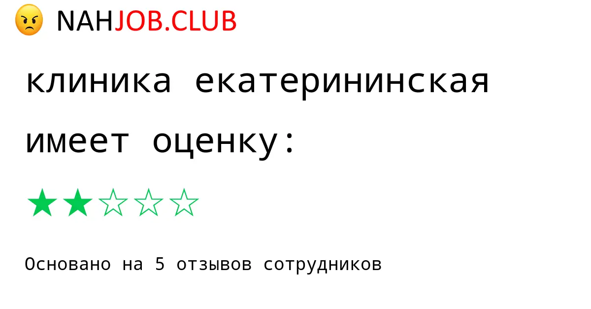 🔴 В списке 5 отзывов бывших работников про КЛИНИКА ЕКАТЕРИНИНСКАЯ с рейтингом 2 из 5 . Это искренние мнения про атмосферу, доходы, штрафы, отпуска.
