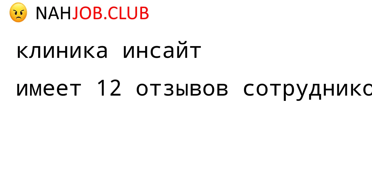 Добрый день! Хочу поддержать все реальные отзывы от реальных людей, все написанное о ООО Клиника инсайт в г.Казань, ул. Ясеневая, д. 64 (стационар клиники, есть еще в г.Казани на ул. Зур Урам, и ул. Ак.Губкина и в г.Наб. Челны и г.Альметьевкс) абсолютная правда. Молодцы ребята, что пишите. Я тоже из бывших наемных работников данной клиники. Думала повезло и наконец-то я сидя в декретном нашла хорошую подработку медсестрой на предрейсовых осмотрах водителей, а спустя какое-то время оказалось, что место гнилое, при приеме на работу обещают горы золотые, аж заслушаться можно, а при увольнении (по инициативе работника) обманут, денег всех не выплатят. Мирзин Рустем Талгатович хамло. Я лично проработала три месяца, с января по неполный апрель 2015г., а зарплату мне так и не перечислили. Звонила неоднократно менеджеру отдела, но в ответ тишина, либо ссылаются, что бухгалтер начислять зарплату не успевает, короче плюнула я на их кутарушную подработку и ушла в Ак Барс Мед и правильно сделала, работу нашла и от рабства инсайта освободилась. Конечно если не верите проверьте на собственном опыте. И еще при приеме на работу новых сотрудников им постоянно «втирают», что бывший сотрудник на данной вакансии не справился со своими должностными обязанностями, но это полный бред, так главный... Далее →