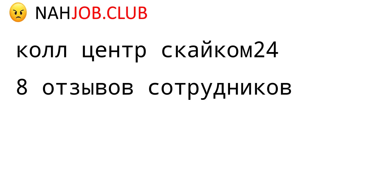 🔴 В базе Nahjob 7 отзывов и мнений бывших и действующих работников про КОЛЛ ЦЕНТР СКАЙКОМ24 по городу Москва . Это реальные отклики про зп, атмосферу, штрафы.