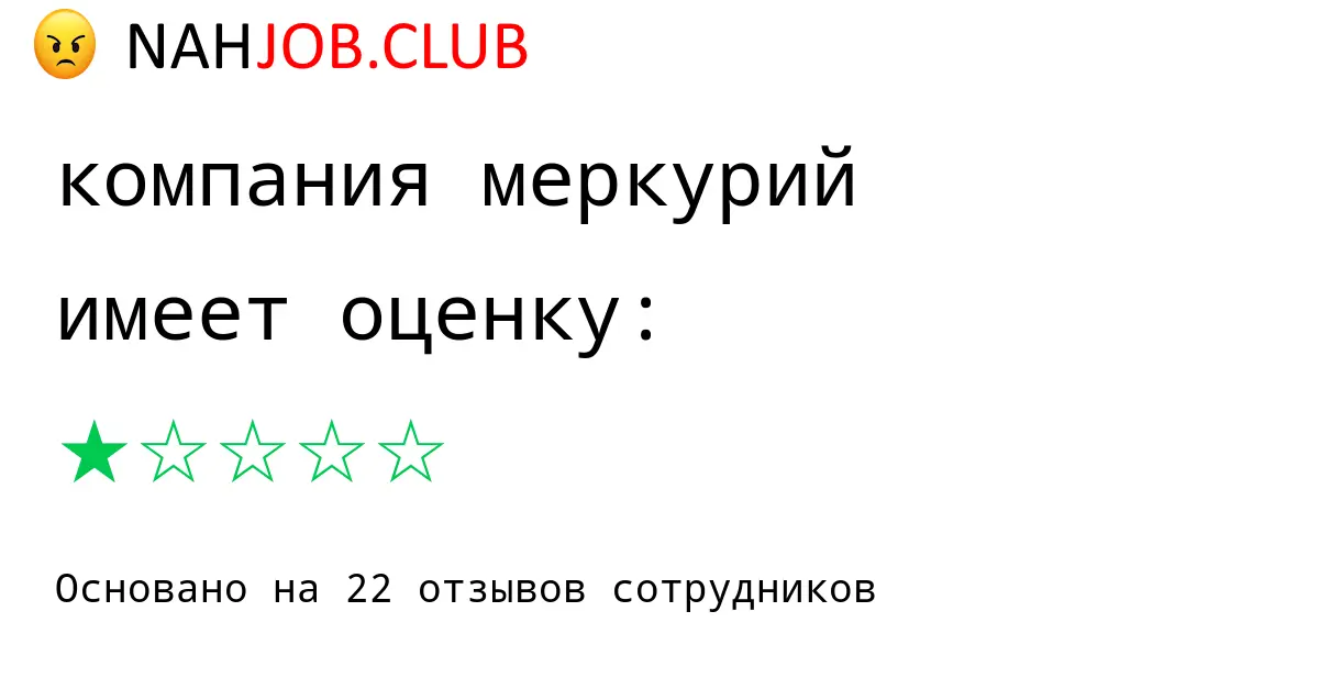 🔴 Изучаете вакансию Инженер компании МЕРКУРИЙ? Почитайте 1 отзыв бывших сотрудников про работу по должности Инженер в МЕРКУРИЙ