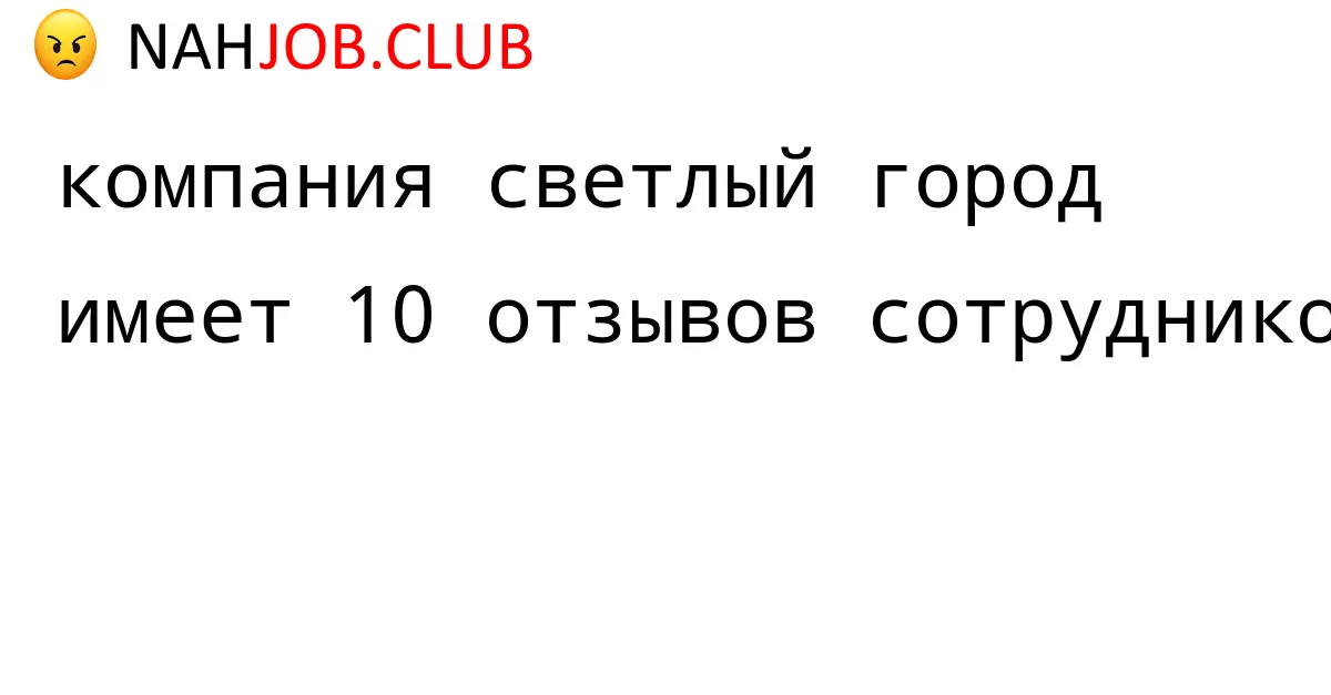 🔴 Изучаете вакансию специалист компании СВЕТЛЫЙ ГОРОД? Почитайте 1 отзыв бывших сотрудников про работу по должности Специалист в СВЕТЛЫЙ ГОРОД