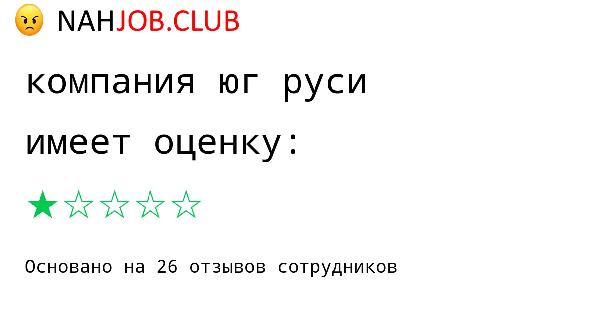 🔴 Мы собрали 26 отзывов бывших сотрудников про ЮГ РУСИ с рейтингом 1 из 5 . Это данные изнутри про зарплату, коллектив, штрафы.