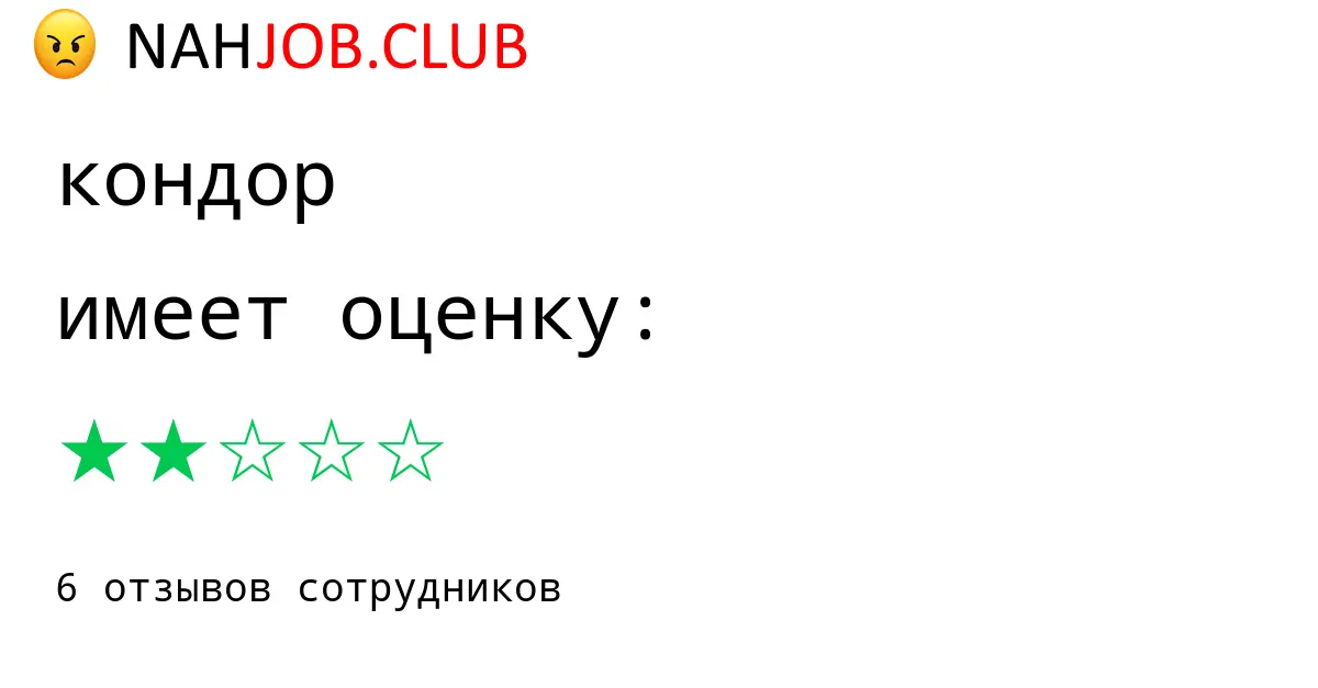 ✓ ПреимуществаИх нет Далее →✗ Недостаткичоп «Кондор», руководитель Жатов [С.] Николаевич. Объект в Барнауле. Огромные задержки зарплаты, 350 р. на сутки питания — смешно, их, кстати, тоже задерживают, зарплата чёрная. [censored] Ему на людей категорически не рекомендую с ним работать. Текучка огромная. Далее →