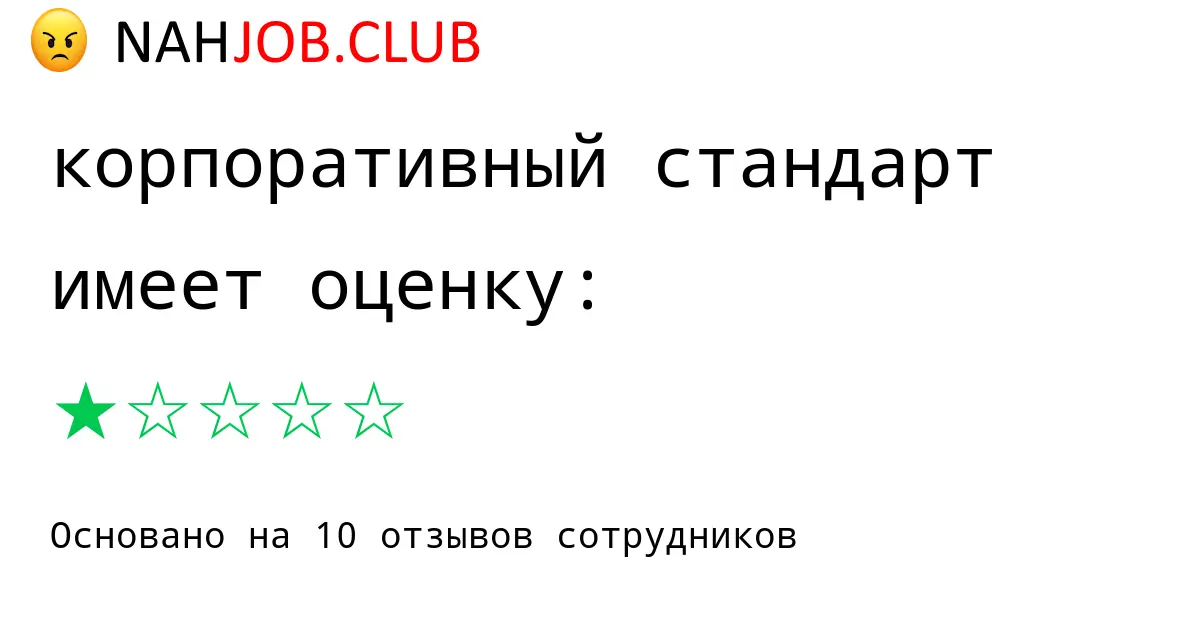 🔴 Изучаете вакансию Юрист компании КОРПОРАТИВНЫЙ СТАНДАРТ? Почитайте 1 отзыв бывших сотрудников про работу по должности Юрист в КОРПОРАТИВНЫЙ СТАНДАРТ