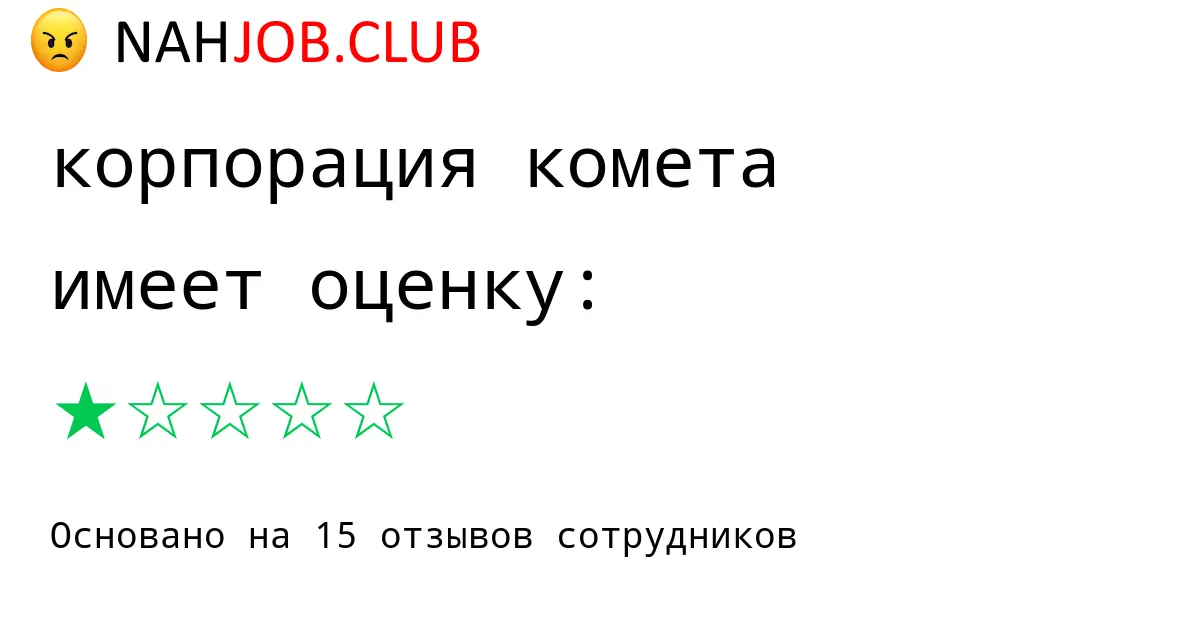 🔴 Изучаете вакансию врач компании КОРПОРАЦИЯ КОМЕТА? Почитайте 1 отзыв бывших сотрудников про работу по должности Врач в КОРПОРАЦИЯ КОМЕТА