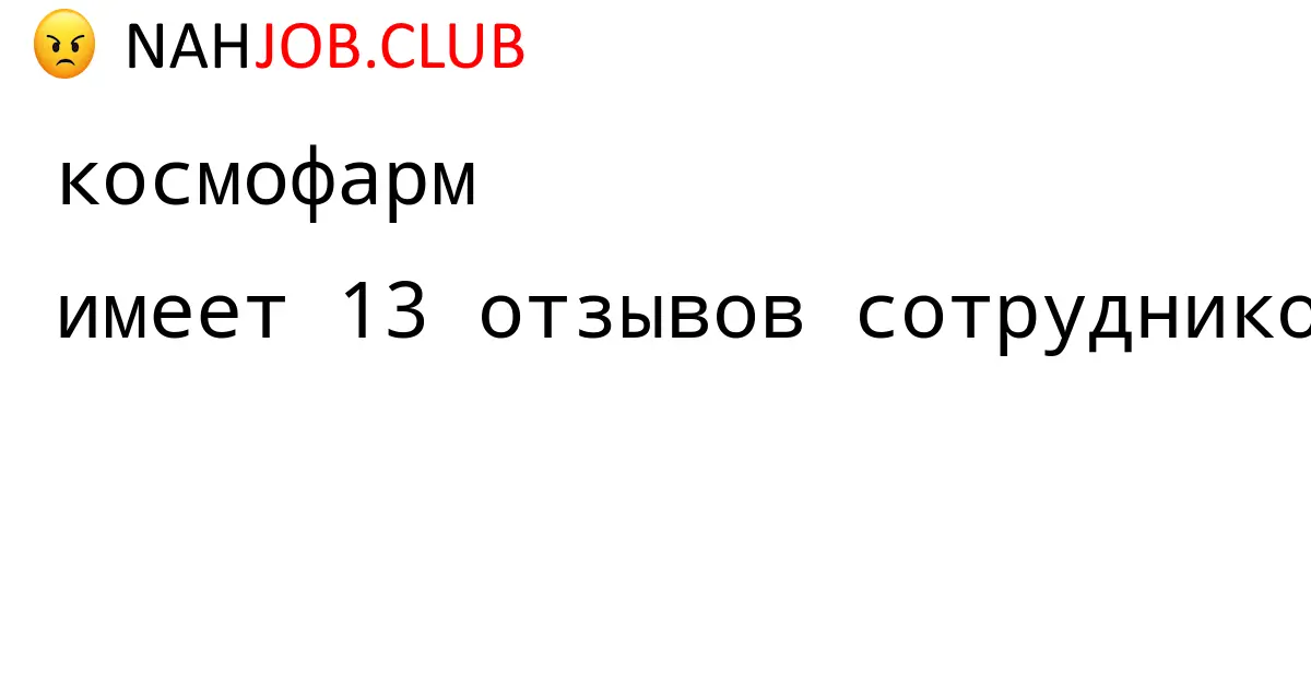 🔴 В базе Nahjob 13 отзывов и мнений бывших и действующих работников про КОСМОФАРМ. Это реальные отклики про зп, атмосферу, штрафы.