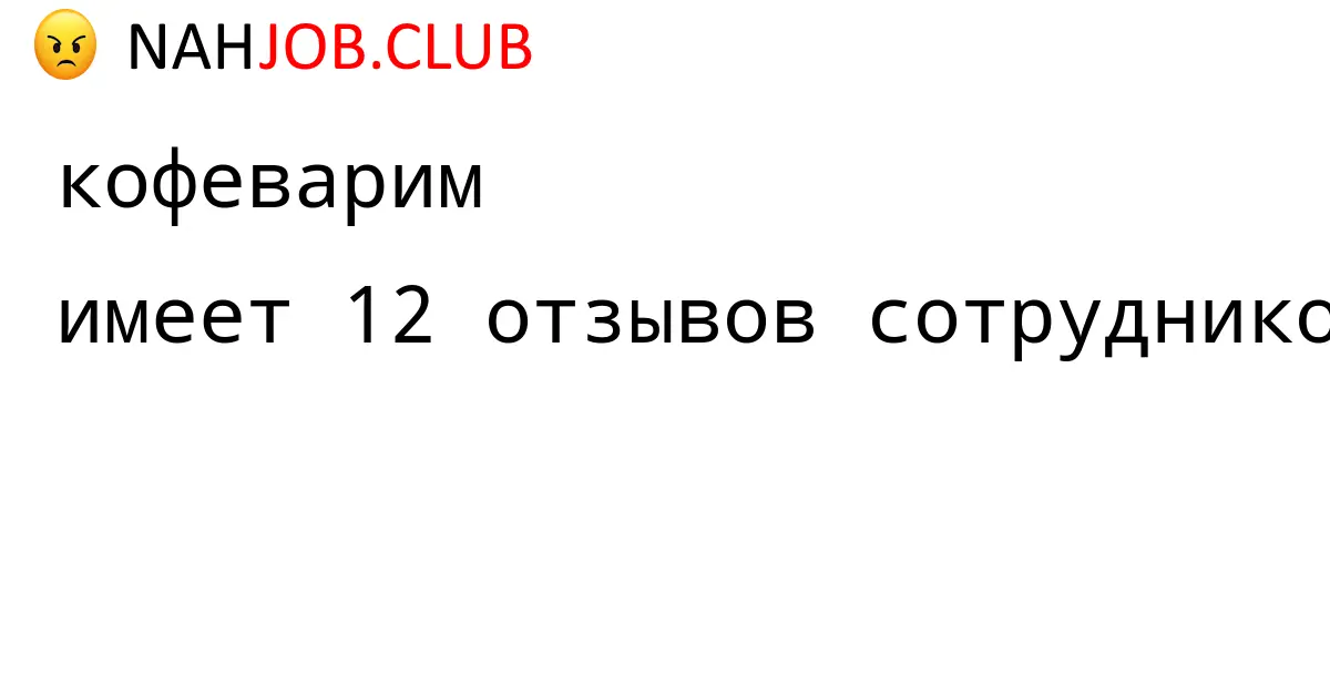 🔴 Изучаете вакансию старший бариста компании КОФЕВАРИМ? Почитайте 1 отзыв бывших сотрудников про работу по должности Старший бариста в КОФЕВАРИМ