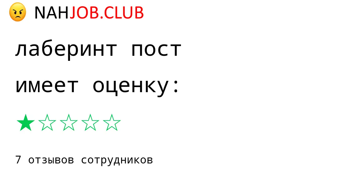 Работали в ЛАБЕРИНТ ПОСТ? Накипело? Расскажите правду! Добавить отзыв