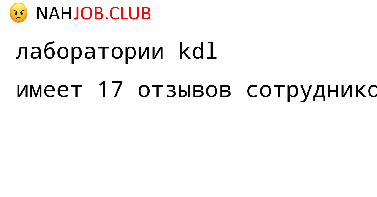 🔴 Изучаете вакансию Курьер компании ЛАБОРАТОРИИ KDL? Почитайте 1 отзыв бывших сотрудников про работу по должности Курьер в ЛАБОРАТОРИИ KDL