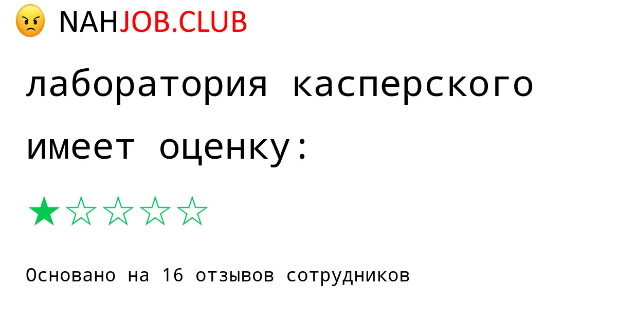 🔴 Мы собрали 16 отзывов бывших сотрудников про ЛАБОРАТОРИЯ КАСПЕРСКОГО по городу Москва с рейтингом 1 из 5 . Это данные изнутри про зарплату, коллектив, штрафы.