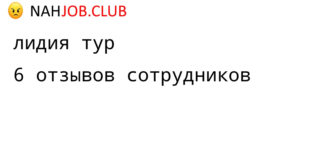 🔴 В базе Nahjob 6 отзывов и мнений бывших и действующих работников про ЛИДИЯ ТУР. Это реальные отклики про зп, атмосферу, штрафы.