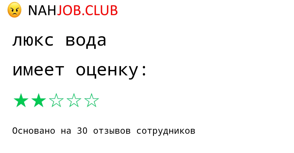 Общая оценка сотрудников ЛЮКС ВОДА по работе в компании: 2.3 баллов из 5