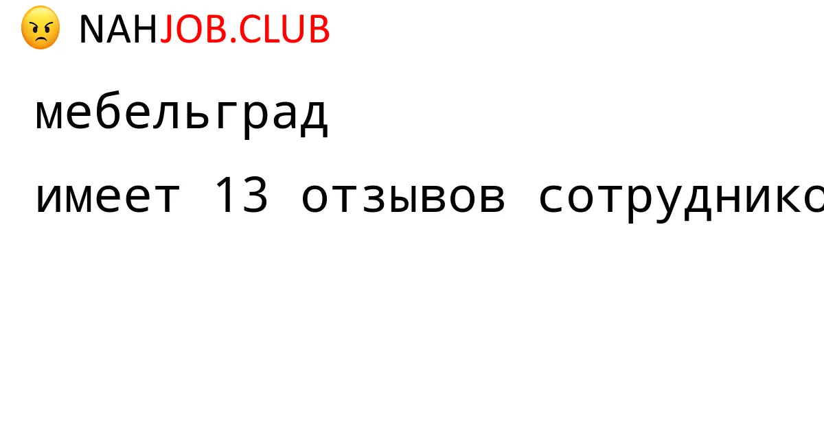 🔴 Мы собрали 1 отзыв бывших сотрудников про МЕБЕЛЬГРАД по городу Уссурийск . Это данные изнутри про зарплату, коллектив, штрафы.