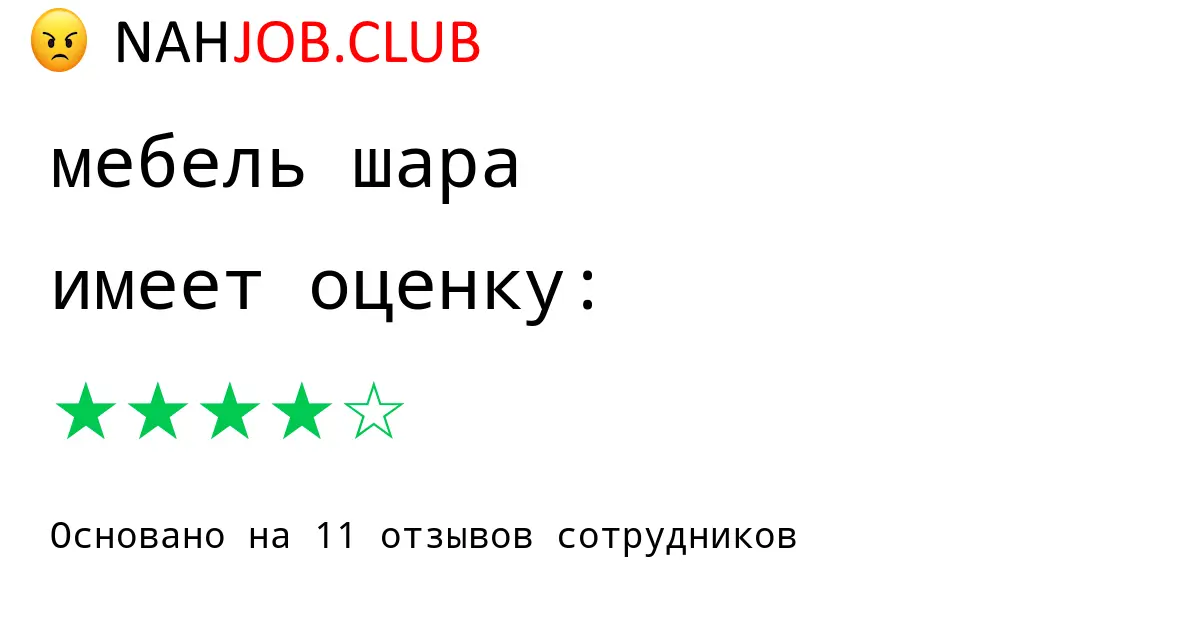 🔴 Изучаете вакансию продавец компании МЕБЕЛЬ ШАРА? Почитайте 1 отзыв бывших сотрудников про работу по должности Продавец в МЕБЕЛЬ ШАРА