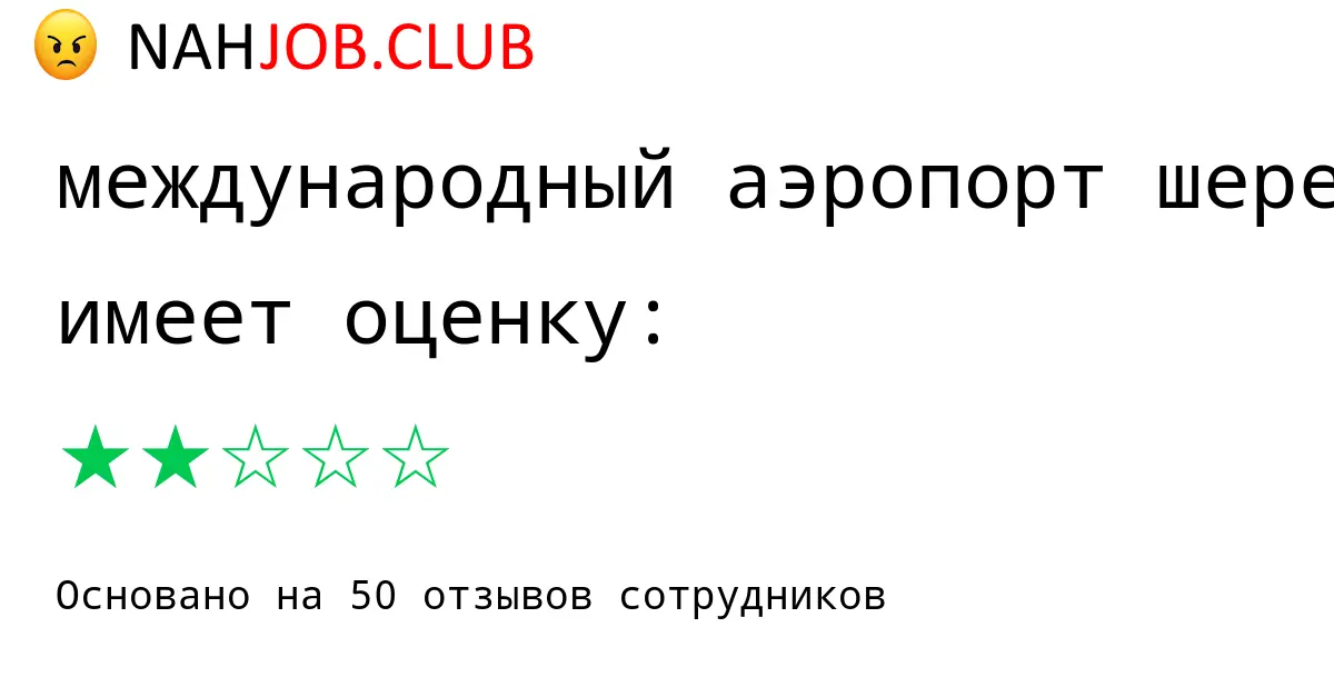 🔴 Изучаете вакансию руководящую компании МЕЖДУНАРОДНЫЙ АЭРОПОРТ ШЕРЕМЕТЬЕВО? Почитайте 1 отзыв бывших сотрудников про работу по должности Руководящую в МЕЖДУНАРОДНЫЙ АЭРОПОРТ ШЕРЕМЕТЬЕВО