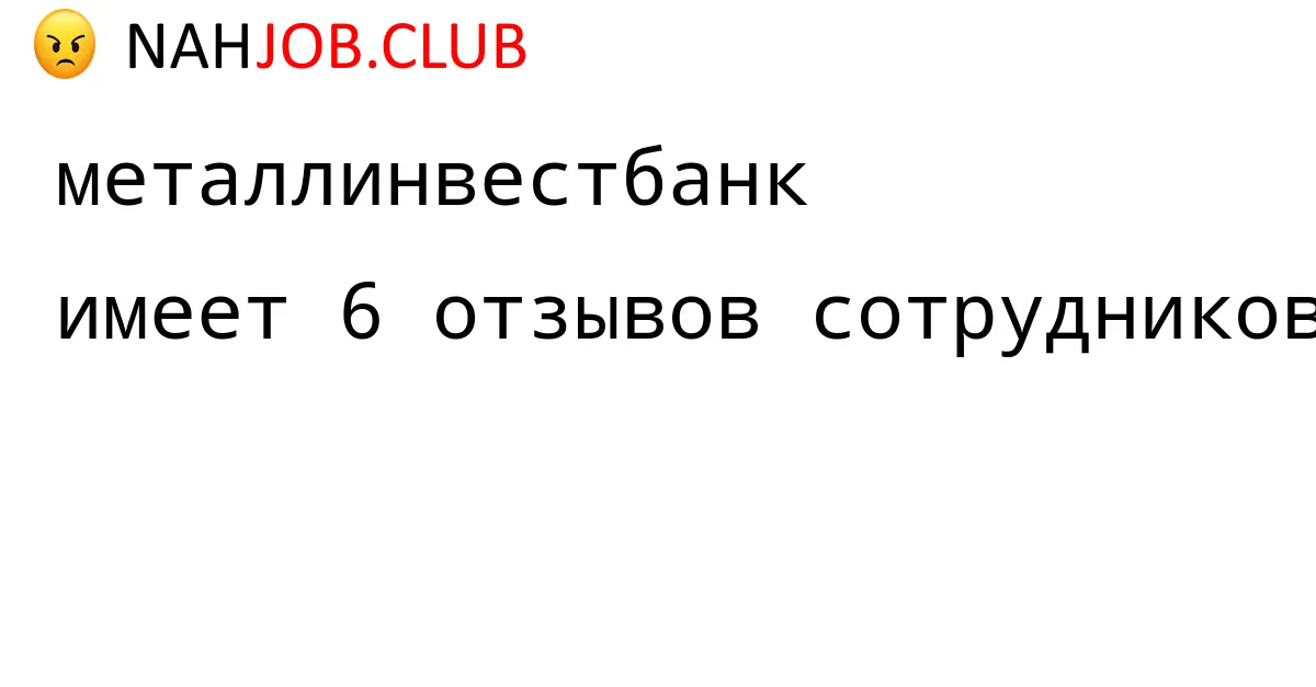 🔴 В базе Nahjob 2 отзыва и мнений бывших и действующих работников про МЕТАЛЛИНВЕСТБАНК по городу Новосибирск . Это реальные отклики про зп, атмосферу, штрафы.