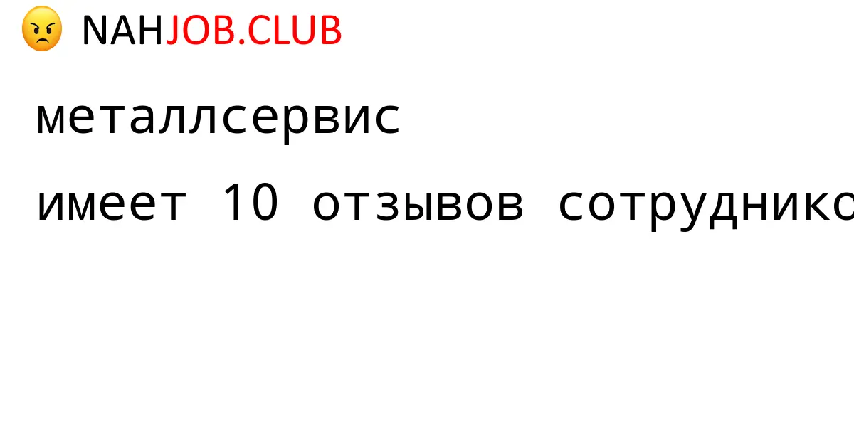 🔴 Мы собрали 1 отзыв бывших сотрудников про МЕТАЛЛСЕРВИС по городу Колпино . Это данные изнутри про зарплату, коллектив, штрафы.