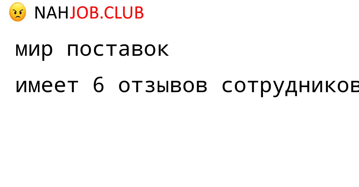 🔴 В базе Nahjob 6 отзывов и мнений бывших и действующих работников про МИР ПОСТАВОК. Это реальные отклики про зп, атмосферу, штрафы.