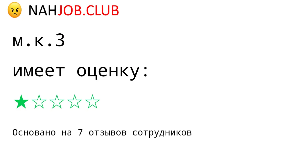 🔴 Мы собрали 7 отзывов бывших сотрудников про М.К.3 по городу Москва с рейтингом 1 из 5 . Это данные изнутри про зарплату, коллектив, штрафы.