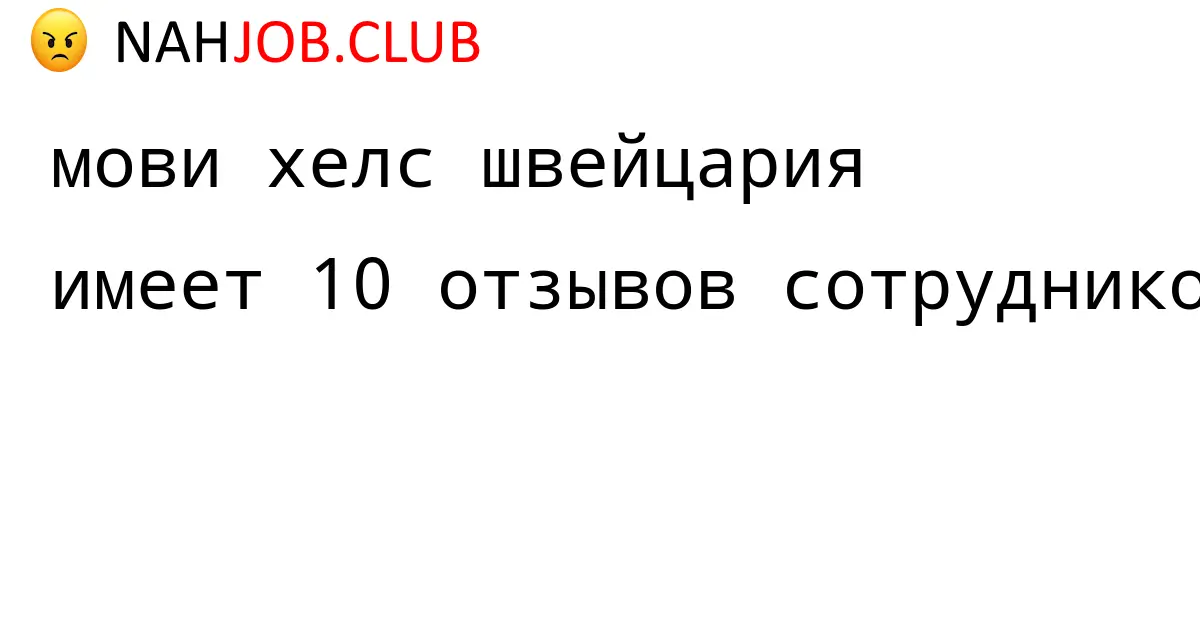 🔴 В базе Nahjob 10 отзывов и мнений бывших и действующих работников про МОВИ ХЕЛС ШВЕЙЦАРИЯ по городу Київ . Это реальные отклики про зп, атмосферу, штрафы.