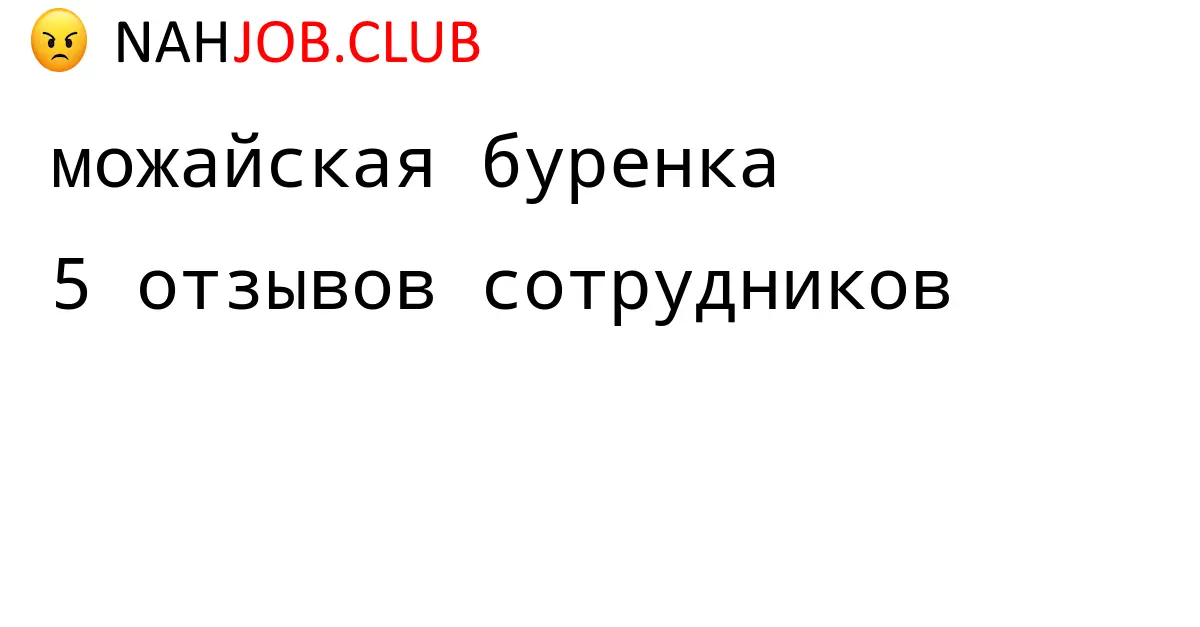 🔴 Изучаете вакансию продавец-консультант компании МОЖАЙСКАЯ БУРЕНКА? Почитайте 1 отзыв бывших сотрудников про работу по должности Продавец-консультант в МОЖАЙСКАЯ БУРЕНКА