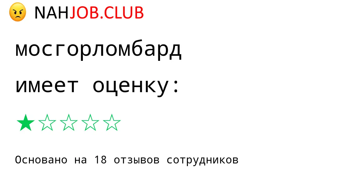 🔴 В списке 18 отзывов бывших работников про МОСГОРЛОМБАРД с рейтингом 1 из 5 . Это искренние мнения про атмосферу, доходы, штрафы, отпуска.