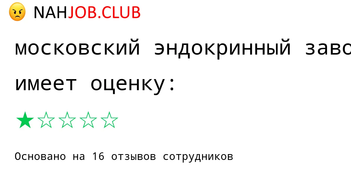 🔴 Изучаете вакансию Повар компании МОСКОВСКИЙ ЭНДОКРИННЫЙ ЗАВОД? Почитайте 1 отзыв бывших сотрудников про работу по должности Повар в МОСКОВСКИЙ ЭНДОКРИННЫЙ ЗАВОД