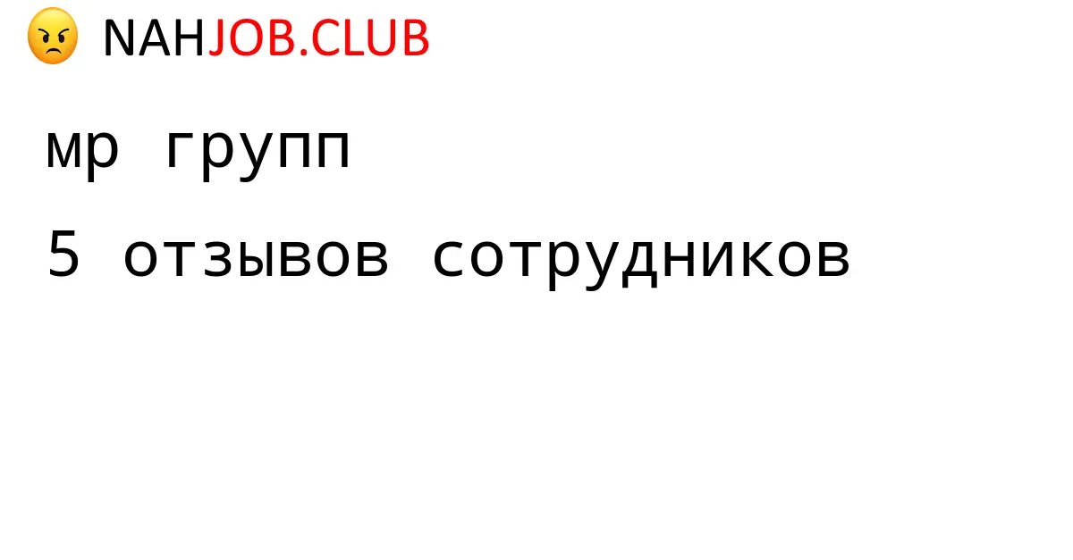 🔴 Мы собрали 5 отзывов бывших сотрудников про МР ГРУПП по городу Москва . Это данные изнутри про зарплату, коллектив, штрафы.