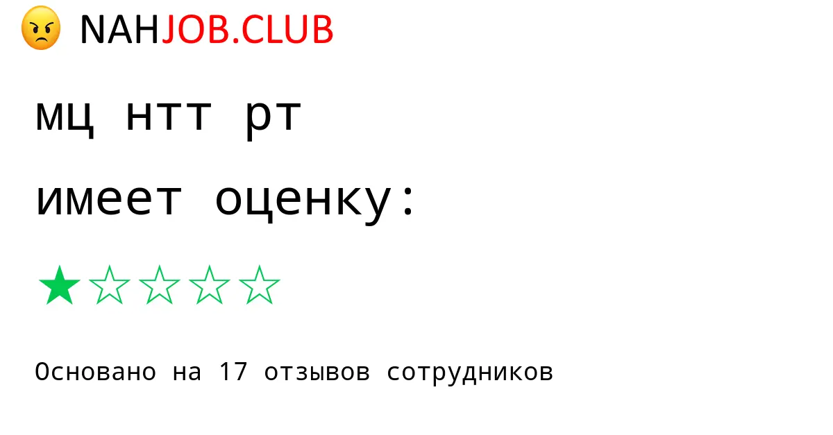 🔴 Изучаете вакансию оператор call центра компании МЦ НТТ РТ? Почитайте 1 отзыв бывших сотрудников про работу по должности Оператор call центра в МЦ НТТ РТ