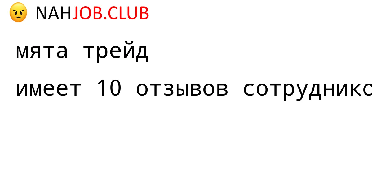 🔴 В базе Nahjob 1 отзыв и мнений бывших и действующих работников про МЯТА ТРЕЙД по городу Белебей . Это реальные отклики про зп, атмосферу, штрафы.
