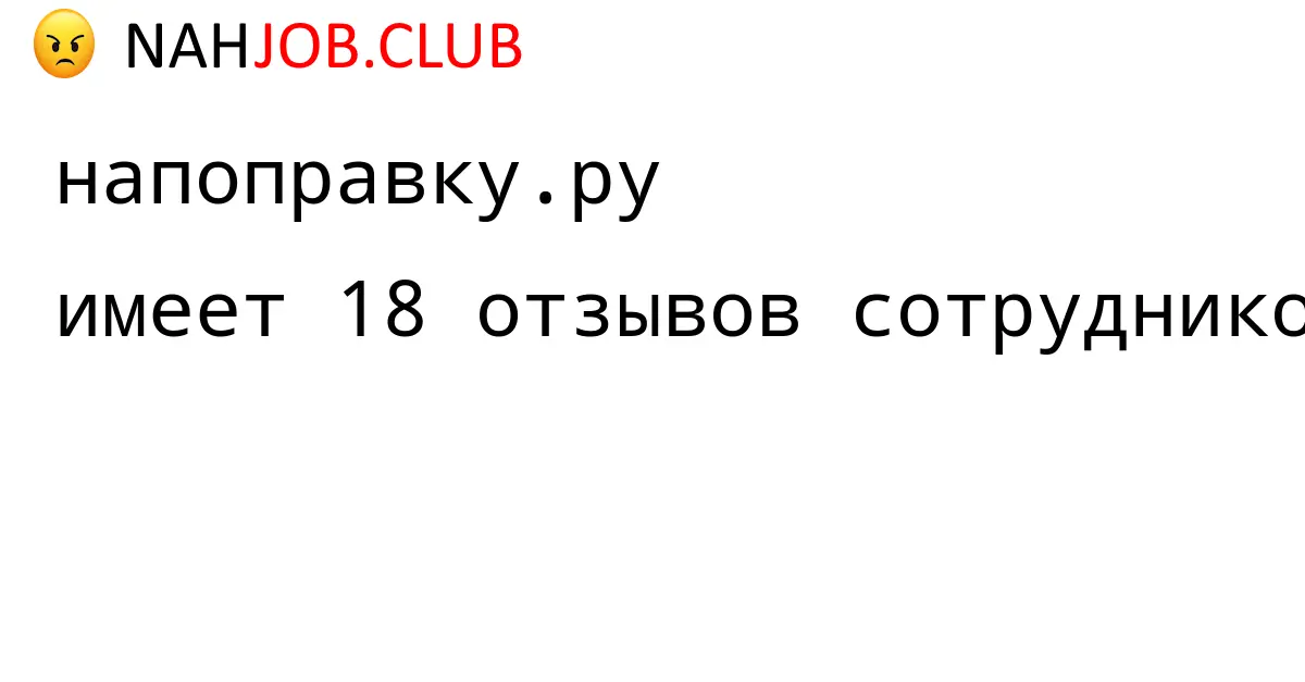 🔴 Изучаете вакансию разработчик компании НАПОПРАВКУ.РУ? Почитайте 1 отзыв бывших сотрудников про работу по должности Разработчик в НАПОПРАВКУ.РУ