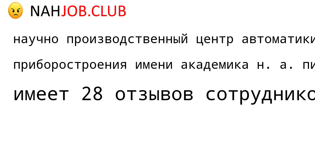 🔴 В списке 28 отзывов бывших работников про НАУЧНО ПРОИЗВОДСТВЕННЫЙ ЦЕНТР АВТОМАТИКИ И ПРИБОРОСТРОЕНИЯ ИМЕНИ АКАДЕМИКА Н. А. ПИЛЮГИНА. Это искренние мнения про атмосферу, доходы, штрафы, отпуска.