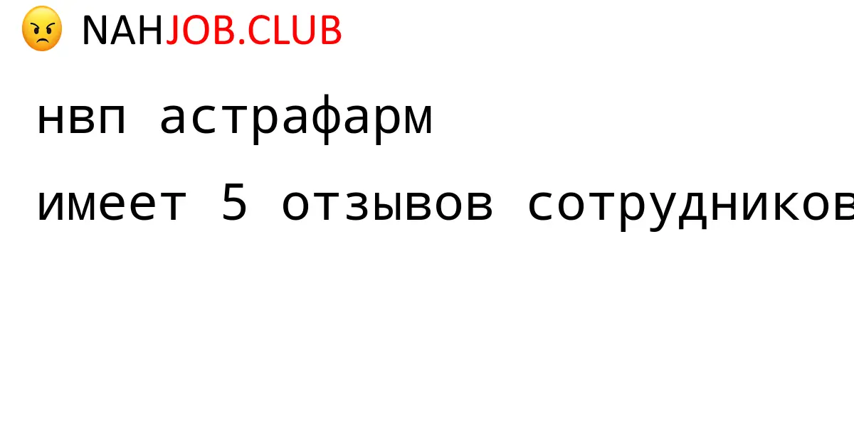 🔴 В базе Nahjob 1 отзыв и мнений бывших и действующих работников про НВП АСТРАФАРМ по городу Нижний Тагил . Это реальные отклики про зп, атмосферу, штрафы.