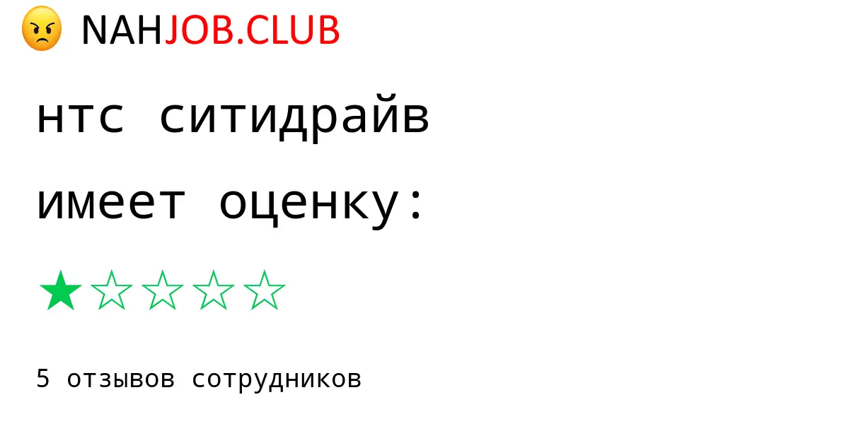 🔴 В базе Nahjob 1 отзыв и мнений бывших и действующих работников про НТС СИТИДРАЙВ по городу Калуга с рейтингом 1 из 5 . Это реальные отклики про зп, атмосферу, штрафы.