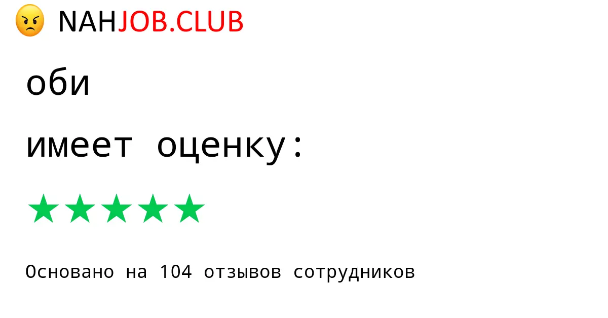 🔴 В базе Nahjob 1 отзыв и мнений бывших и действующих работников про ОБИ по городу Волжский . Это реальные отклики про зп, атмосферу, штрафы.