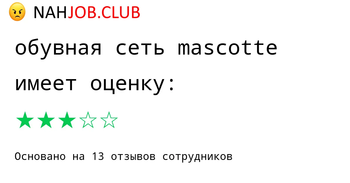 🔴 Изучаете вакансию продавец-консультант компании ОБУВНАЯ СЕТЬ MASCOTTE? Почитайте 4 отзыва бывших сотрудников про работу по должности Продавец-консультант в ОБУВНАЯ СЕТЬ MASCOTTE
