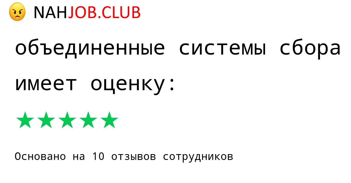 🔴 В базе Nahjob 5 отзывов и мнений бывших и действующих работников про ОБЪЕДИНЕННЫЕ СИСТЕМЫ СБОРА ПЛАТЫ по городу Москва с рейтингом 5 из 5 . Это реальные отклики про зп, атмосферу, штрафы.