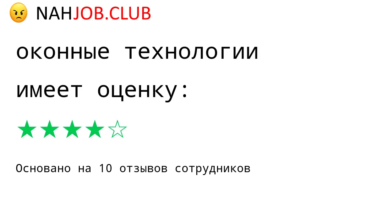 🔴 В базе Nahjob 10 отзывов и мнений бывших и действующих работников про ОКОННЫЕ ТЕХНОЛОГИИ по городу Новокузнецк с рейтингом 4 из 5 . Это реальные отклики про зп, атмосферу, штрафы.