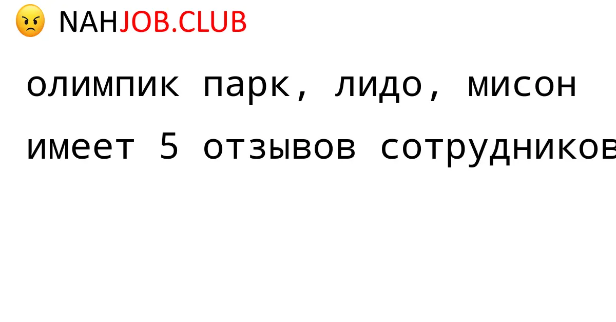 🔴 В базе Nahjob 5 отзывов и мнений бывших и действующих работников про ОЛИМПИК ПАРК, ЛИДО, МИСОН по городу Уфа . Это реальные отклики про зп, атмосферу, штрафы.