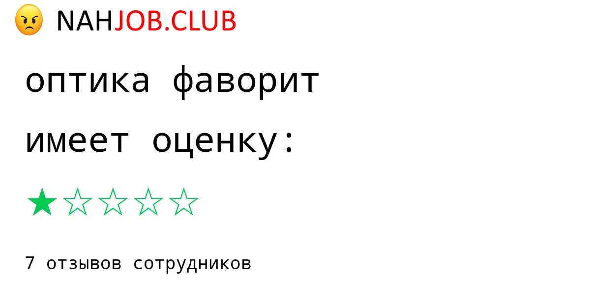 🔴 Мы собрали 7 отзывов бывших сотрудников про ОПТИКА ФАВОРИТ с рейтингом 1 из 5 . Это данные изнутри про зарплату, коллектив, штрафы.